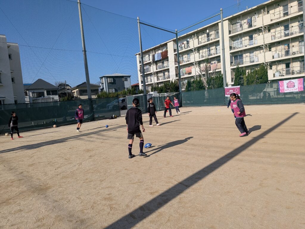 また、ラクビ―ボールでの練習は